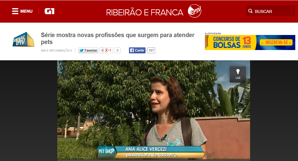 Matéria exibida em toda a região pela EPTV sobre a profissão de adestrador